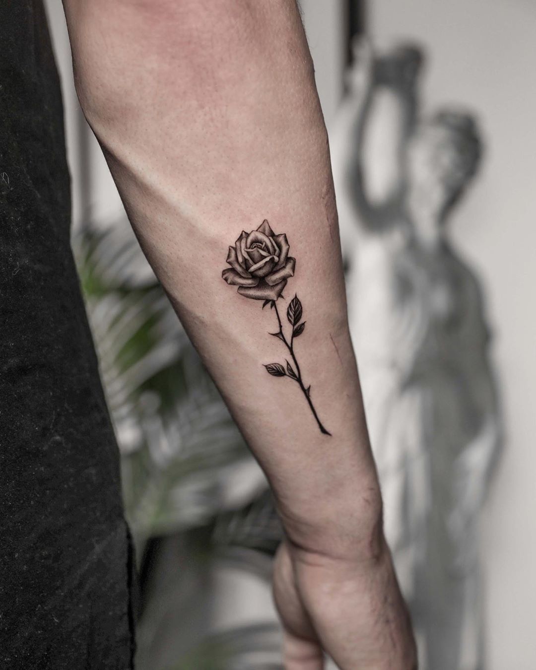 Rose tattoos are an exemplary plan tracing all the way back to the early mariner tattoo days. In those days, men would have them inked to help them to remember the adoration and satisfaction hanging tight for them at home. Today, they address life itself; the bloom is an image of magnificence, while the thistles of the rose address torment and misfortune. A rose wrist tattoo suits a man who adores the conventional tattoo craftsmanship style and needs an inking with unpretentious importance.