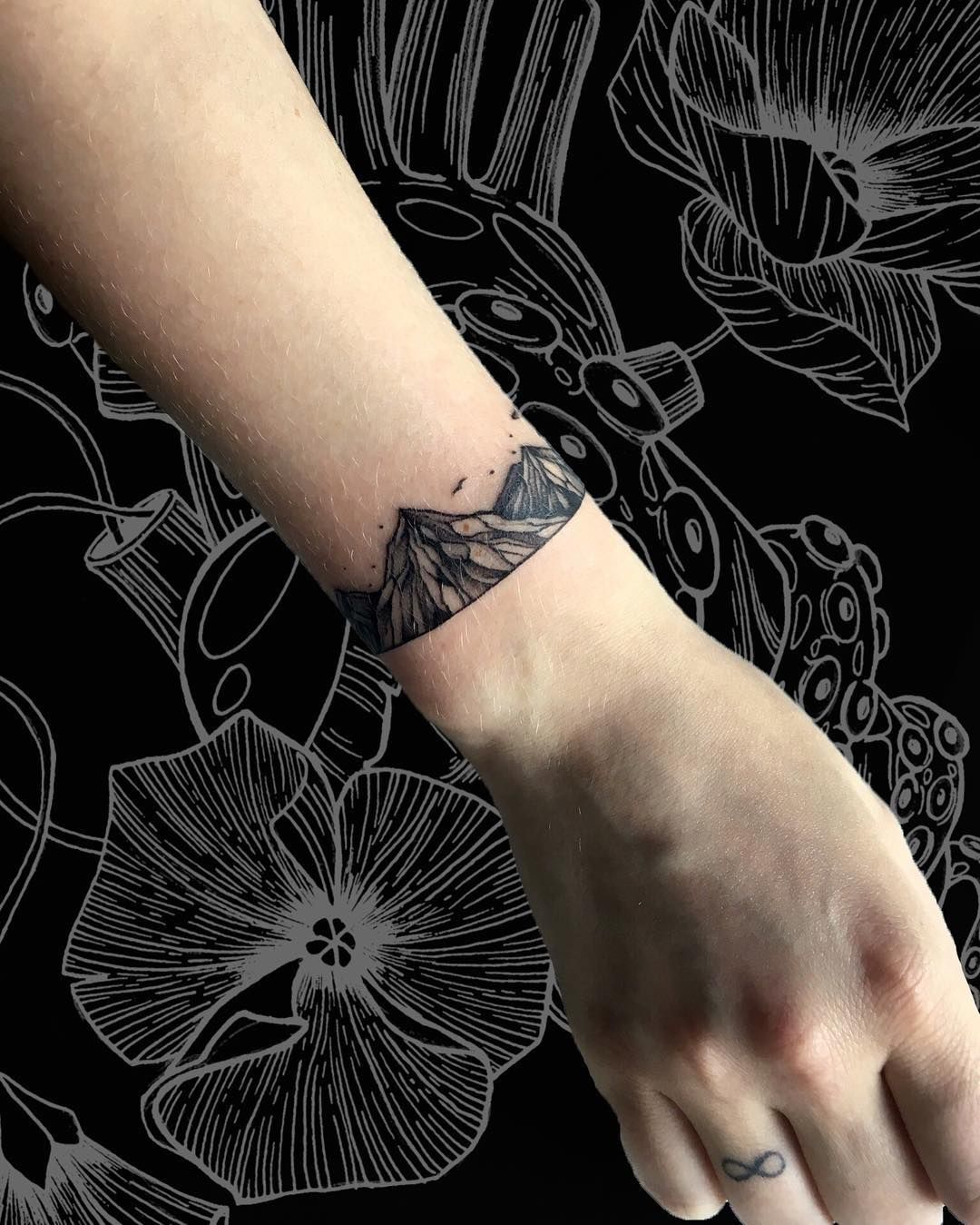 A wrist wristband tattoo is otherwise called a sleeve tattoo or band tattoo. For a manly take, numerous men pick straightforward, strong dark lines of differing thickness. That gives the inking an inconspicuous ancestral or mathematical vibe and suits folks with a moderate style. Another choice is a more multifaceted, ancestral style inking that can be mixed into a tattoo sleeve or a hand tattoo.