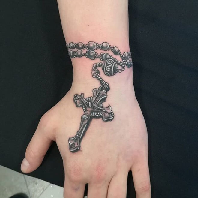 Catholic men searching for a tattoo that honors their confidence ought to consider a rosary tattoo on their wrist. A gifted tattoo craftsman can deliver the plan so it has a practical 3D impact, showing up as a series of dabs that folds over your skin. While a few men pick an accessory-style rosary tattoo, getting the inking on your wrist implies you’ll generally have the option to see it and show it off to other people.